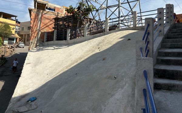 No Complexo do Alemão, a contenção da encosta na Estrada da Alvorada, na comunidade da Fazendinha, trouxe estabilidade e proteção para dezenas de famílias. Com investimento de R$ 345 mil, o solo foi reforçado, a escadaria recuperada e o acesso protegido. O caminho, que sofria com acúmulo de lixo e descarte irregular, agora permite que moradores subam e desçam as vielas com segurança, facilitando o dia a dia da população.